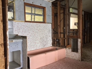 Install new concrete footings. Fabricate/weld/install new steel framing per new design. Level existing subfloor, install new subfloor framing and sheeting. Frame new residence, set trusses, sheet walls and roof. Install new metal roof. Waterproofing on roof top deck. Install exterior doors and windows. Trim,siding, and paint. All new electrical and plumbing. Insulation and drywall. New masonry work to update chimney and foundation.