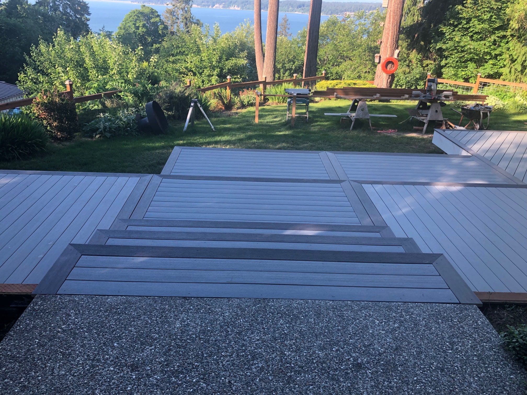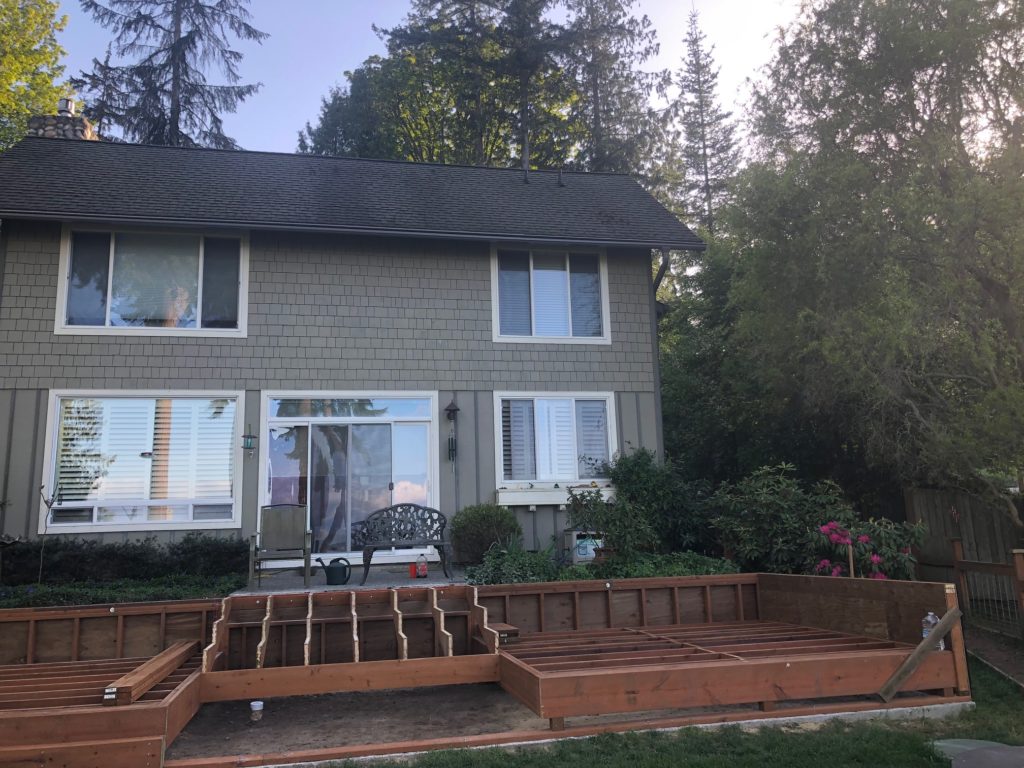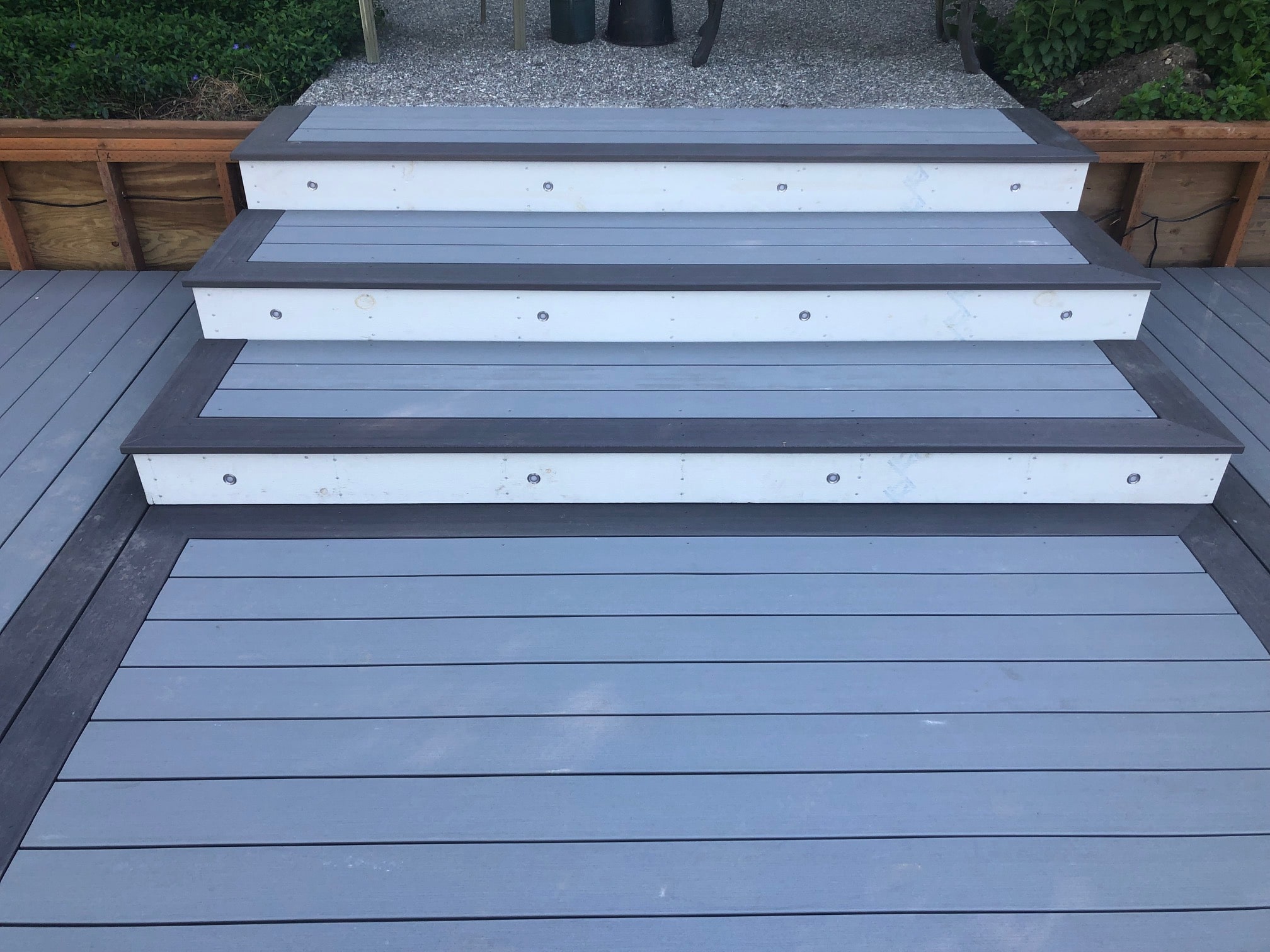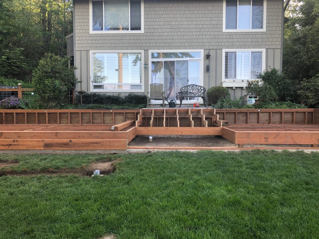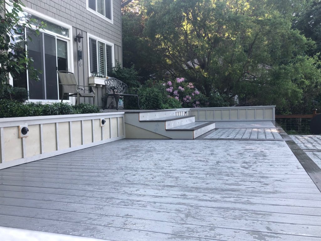 This deck project consisted of removing the old deck, old retaining wall and rebuilding a new retaining wall using tiebacks. This deck build also includes custom lighting up the stairs and retaining wall.