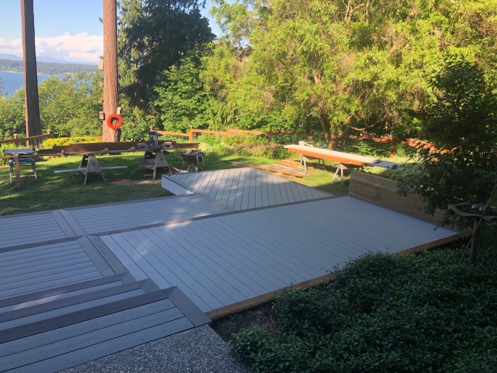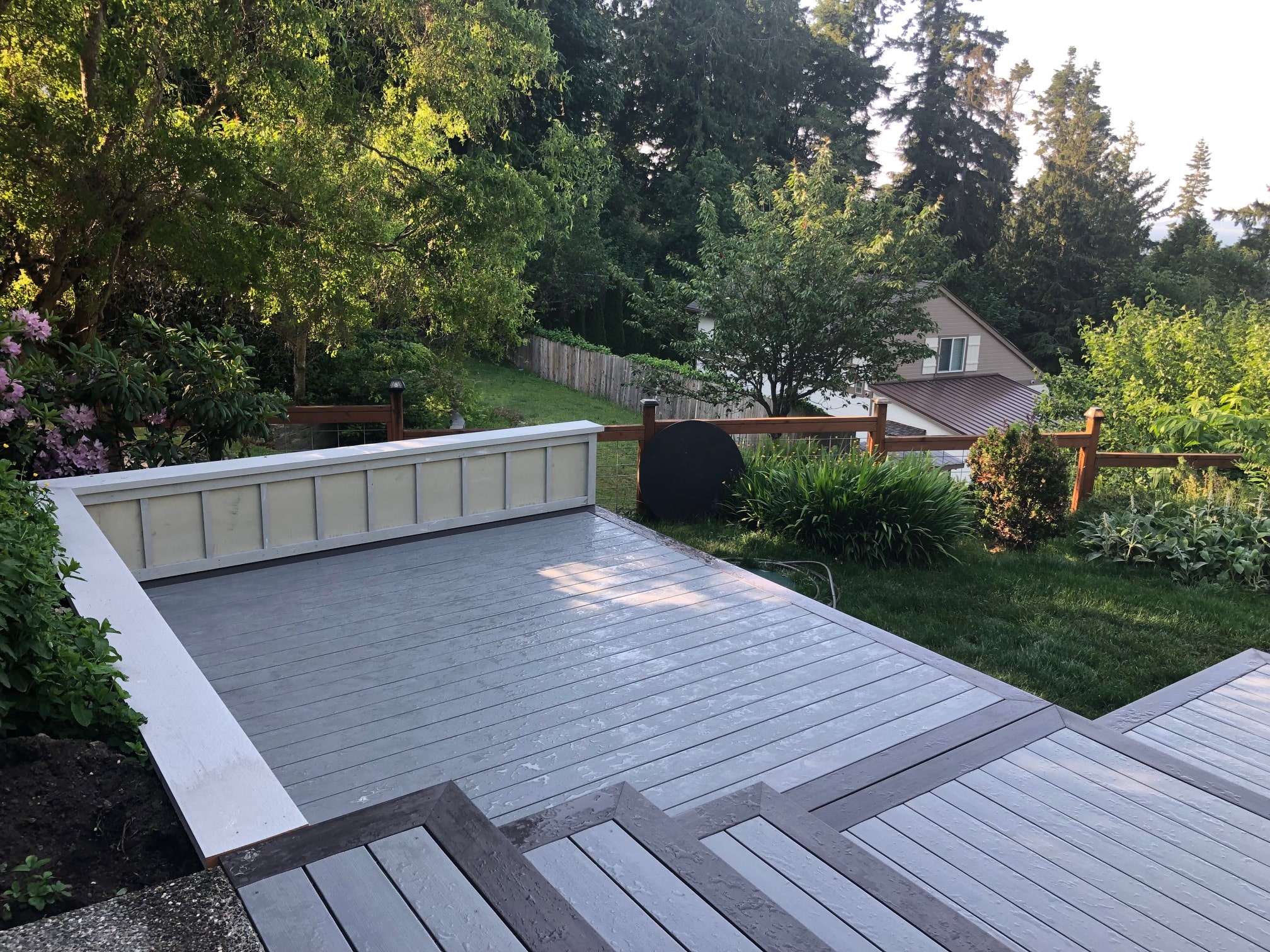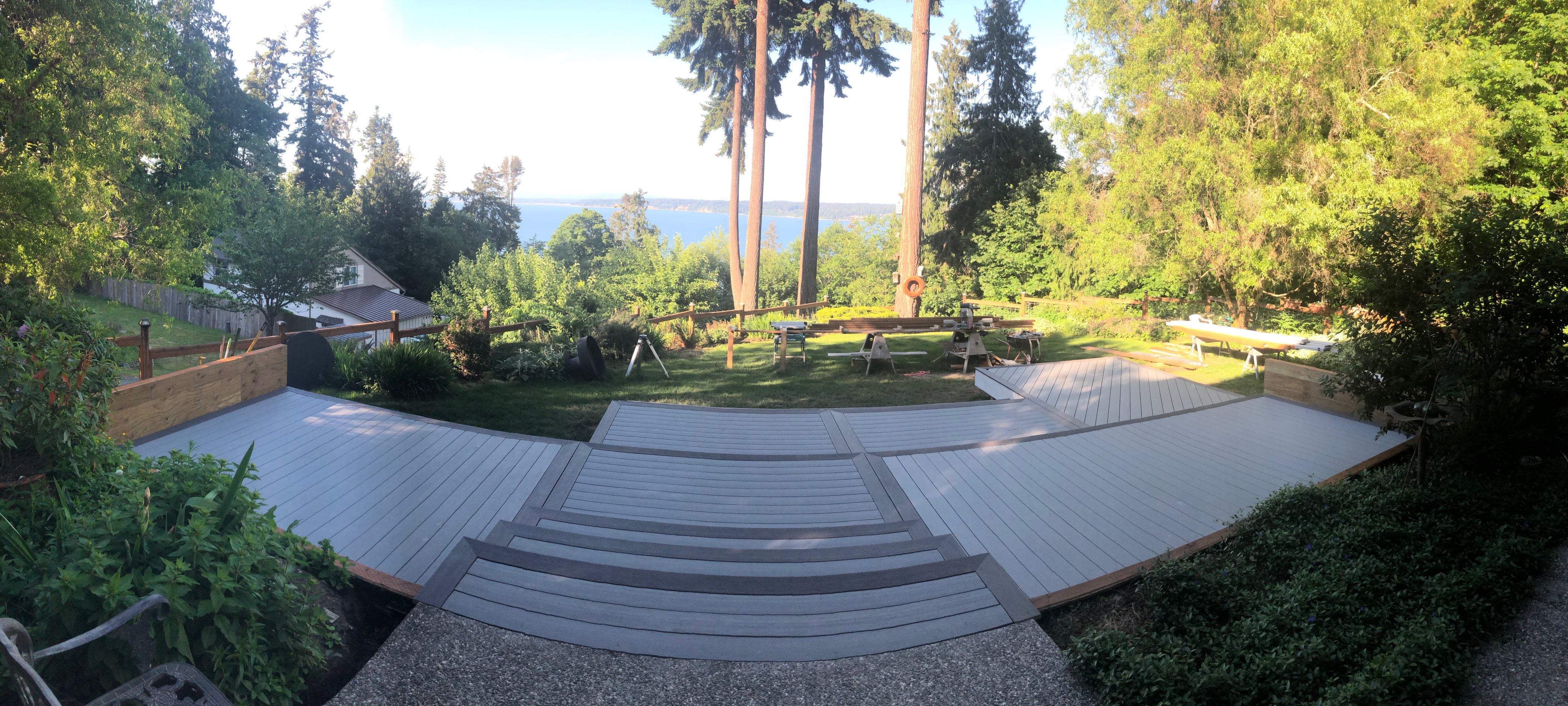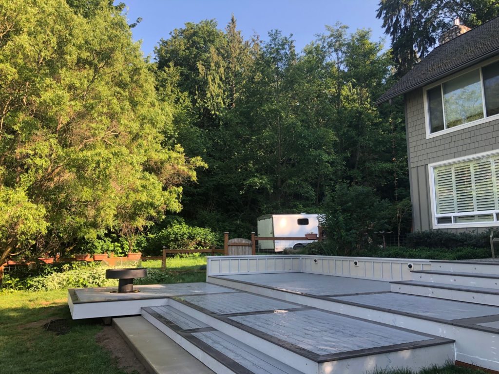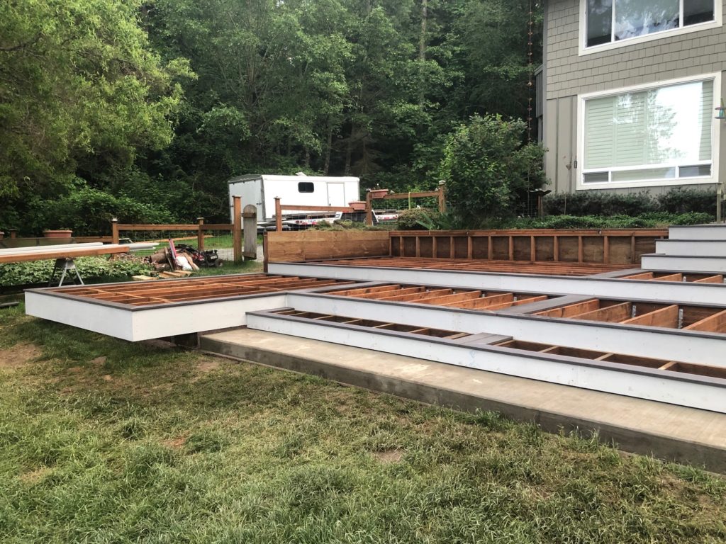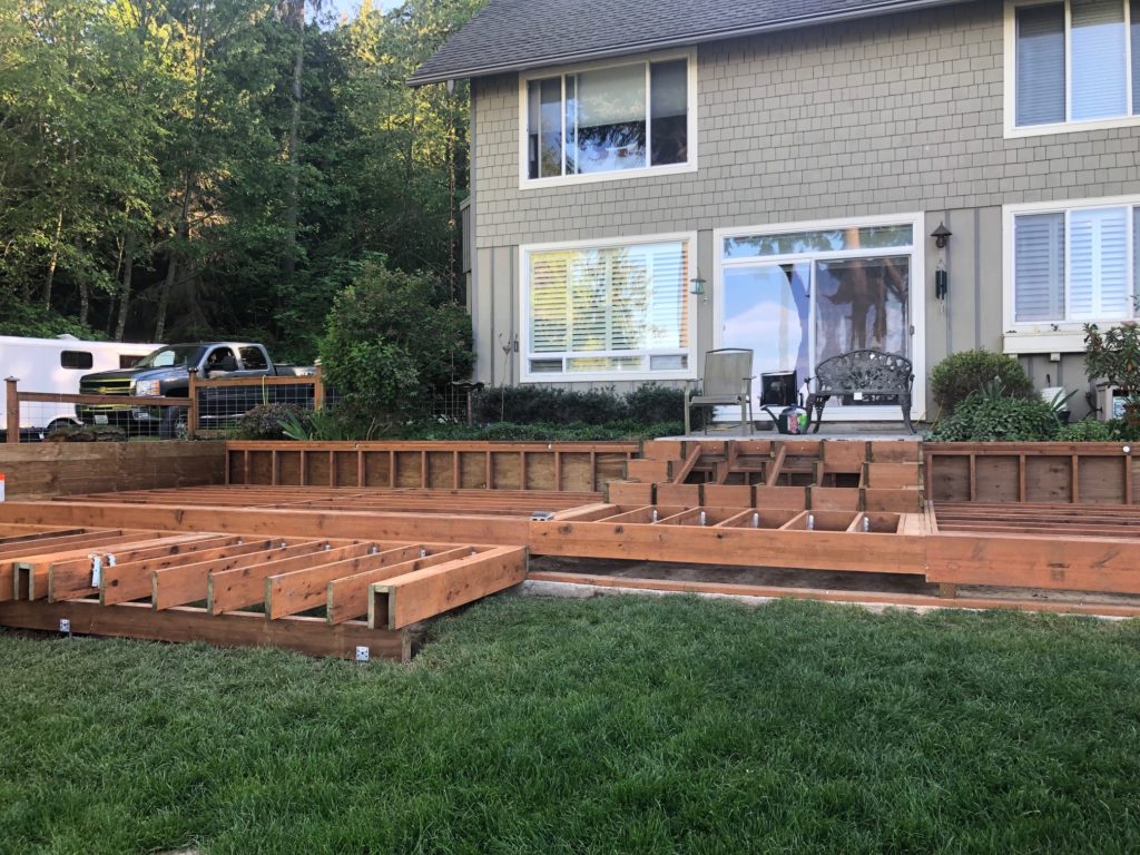 This deck project consisted of removing the old deck, old retaining wall and rebuilding a new retaining wall using tiebacks. This deck build also includes custom lighting up the stairs and retaining wall.