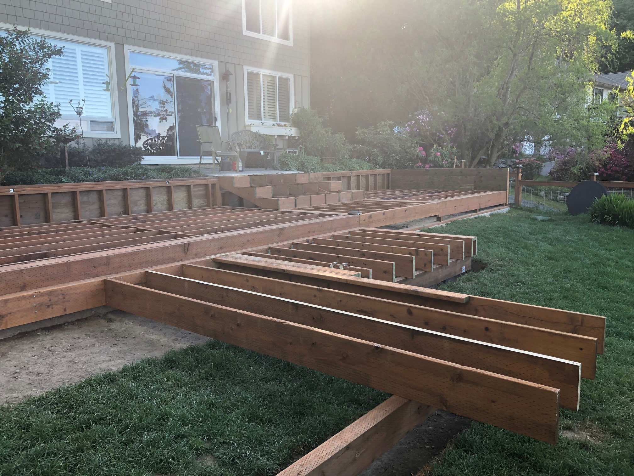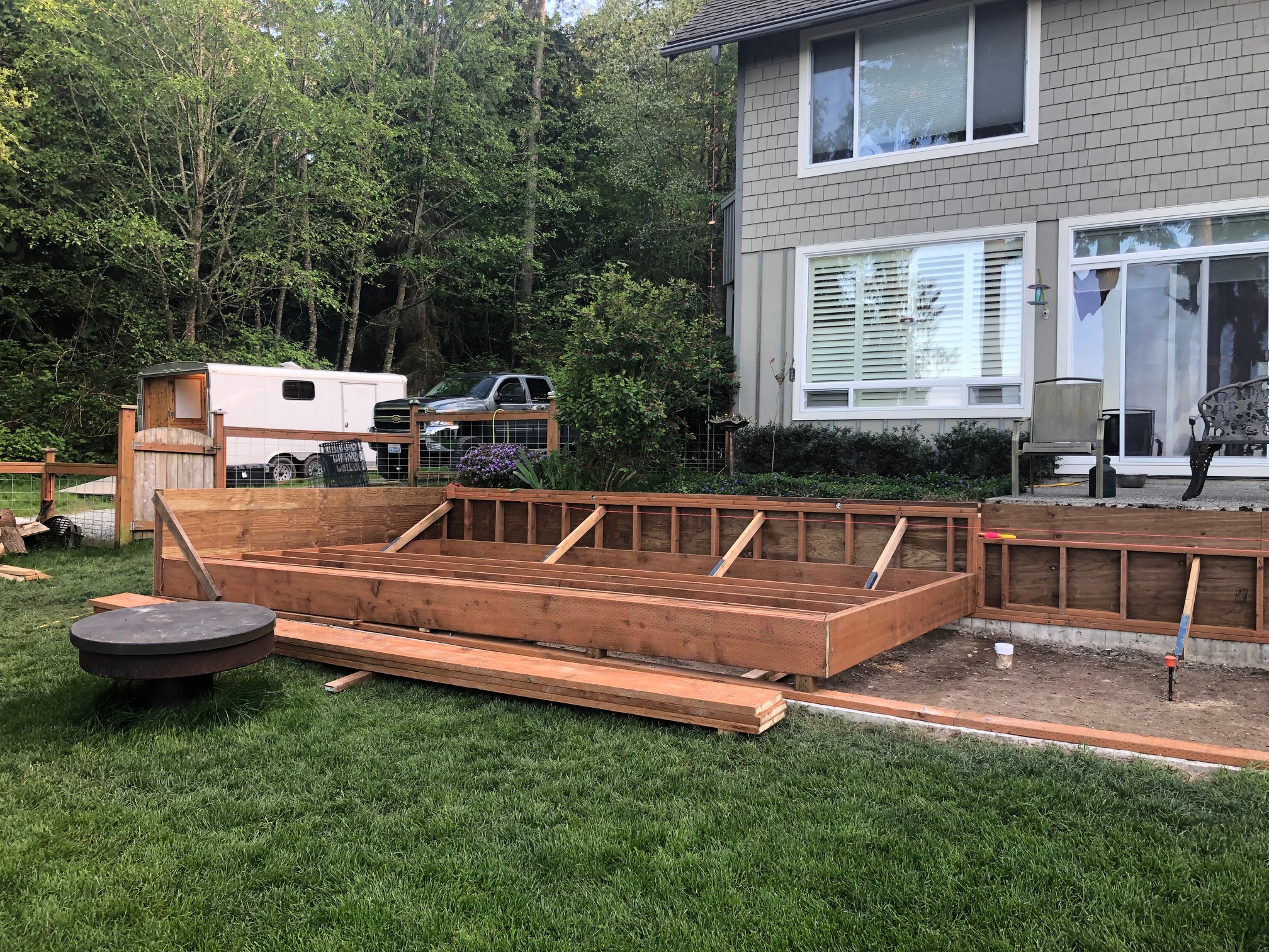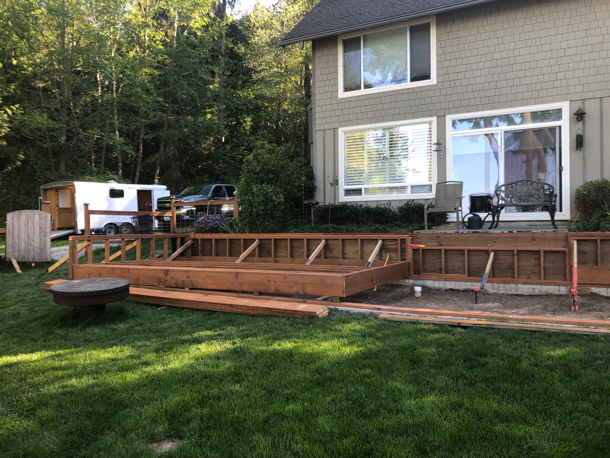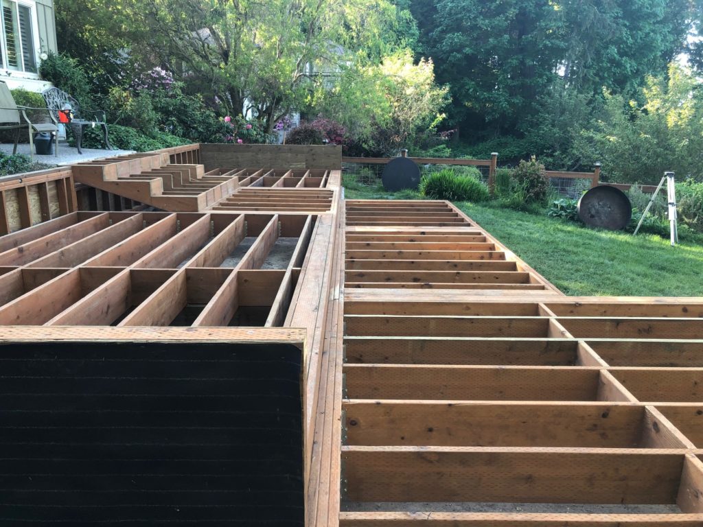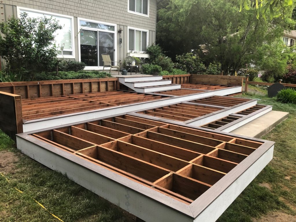 This deck project consisted of removing the old deck, old retaining wall and rebuilding a new retaining wall using tiebacks. This deck build also includes custom lighting up the stairs and retaining wall.